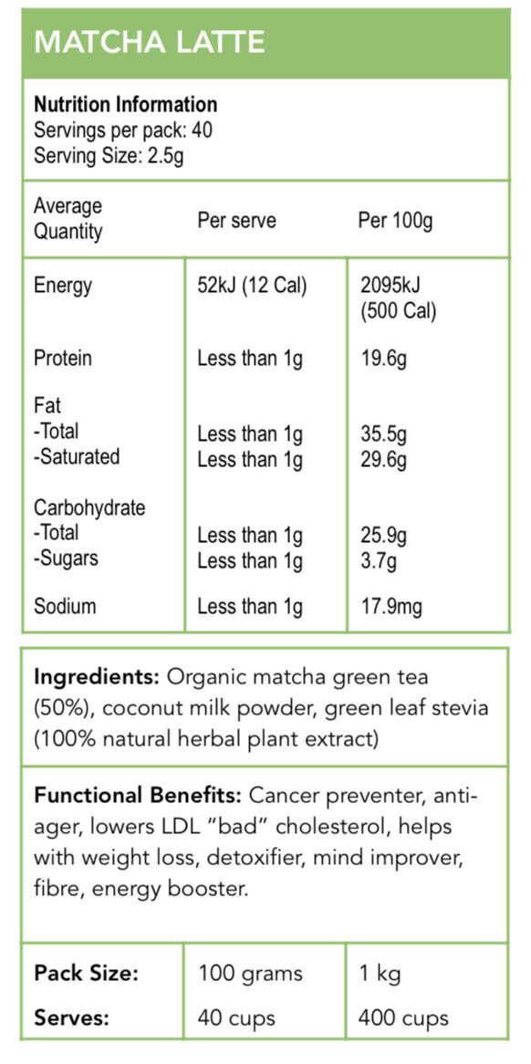 Waking up has never been healthier! Swap out your morning coffee for this antioxidant rich, soft & warming Matcha Latte. Matcha uses the whole green tea leaves that have been ground down to a very fine powder, giving the full benefit of the entire leaf. The soothing 100% organic matcha combined with the added creaminess of coconut creates this nourishing beverage. Perfect iced as well as hot. Even better sprinkled over ice cream!