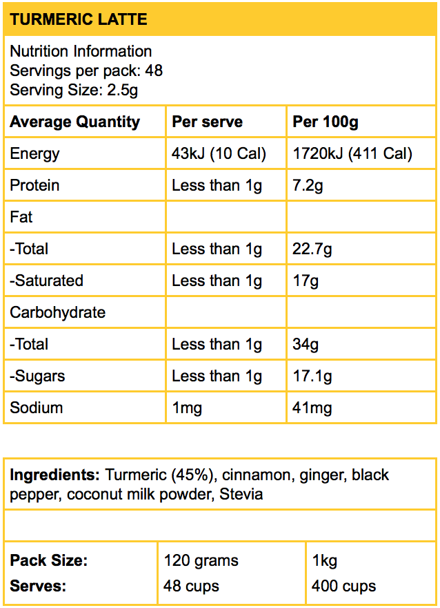A deliciously warming blend of spicy turmeric with hints of cinnamon, ginger & black pepper. Turmeric, the spice of life, has been enjoyed for centuries across the globe for its wonderful medicinal benefits. Spread the light with this powerful & ancient healing spice. Enjoy a cup of this beautifully golden, incredibly delicious nutritional latte. This potent brew can be enjoyed anytime of the day & is perfect when added to bliss balls & smoothies.