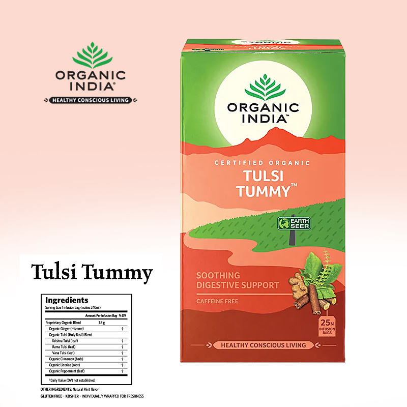 Tulsi’s potent restorative powers are blended with Ginger, Cinnamon and other calming digestive herbs to provide effective digestive support. Delicious, soothing and settling to the stomach and the digestive system.
