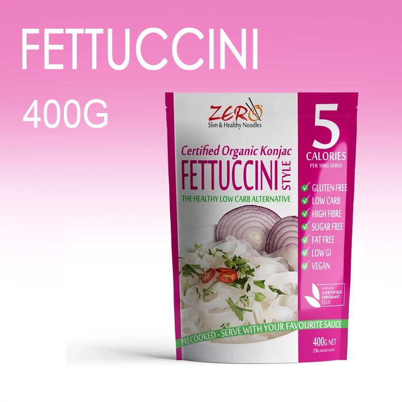 ZERO Fettuccine – Flat noodle or pasta. Best used in pasta sauces, but also doubles as an asian ‘Pad Thai’ style noodle.